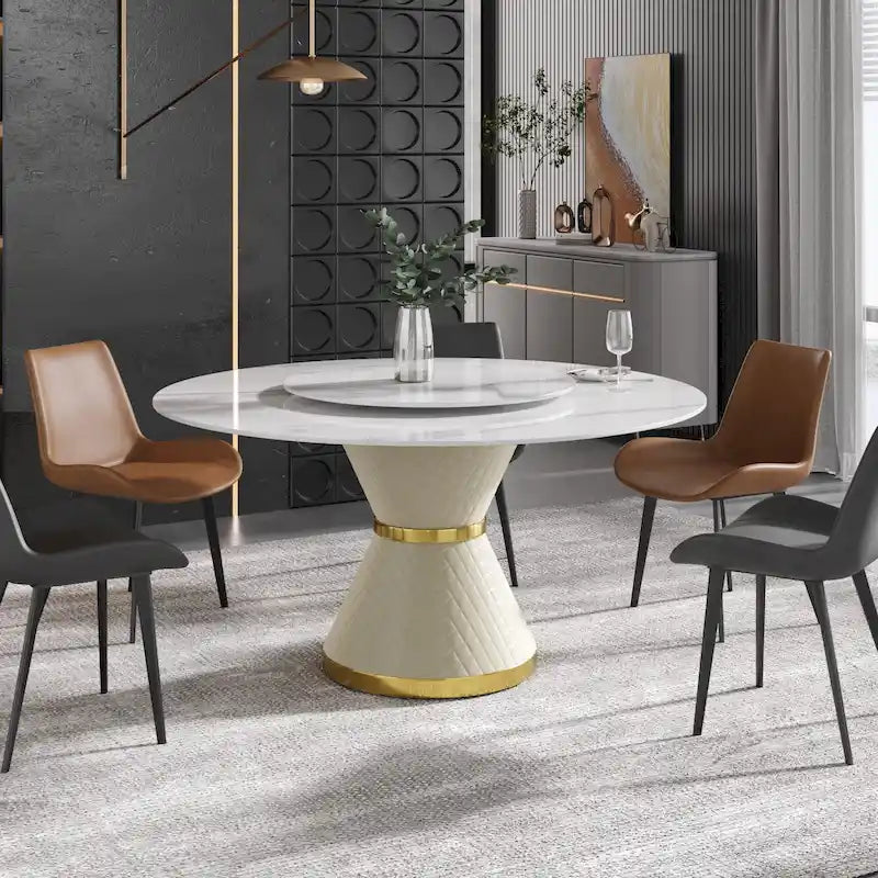 59 Modern Marble Dining Table Round Dining Table with Lazy Susan