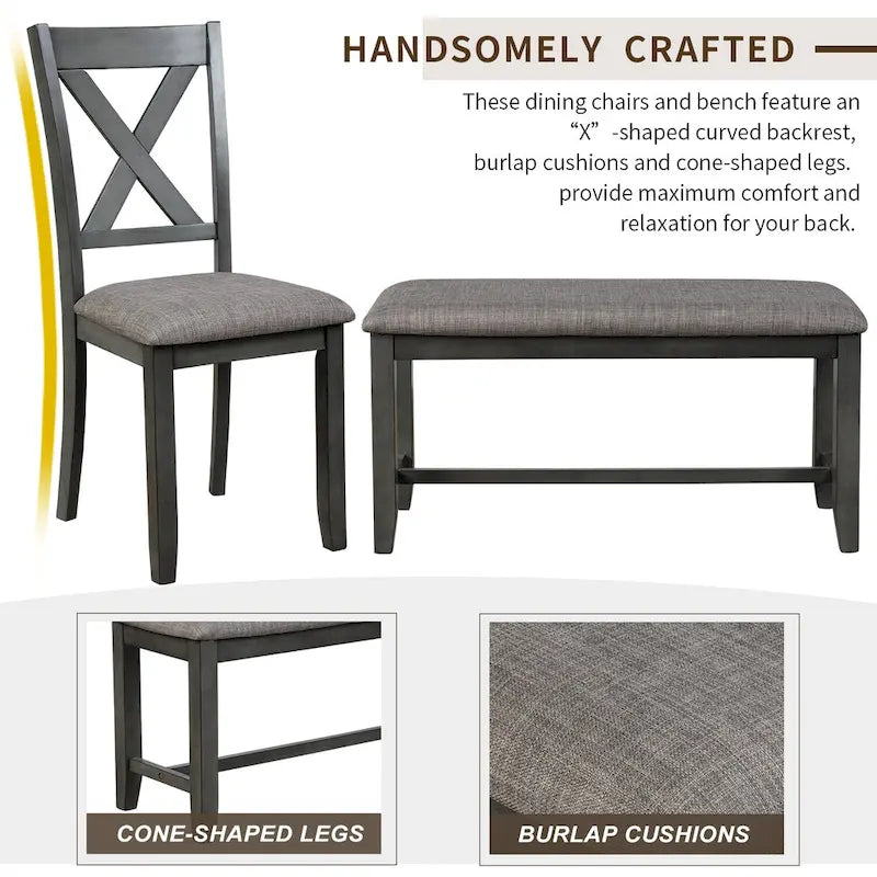 6-Piece Wooden Kitchen Dining Table Set with 4 Chairs and Bench