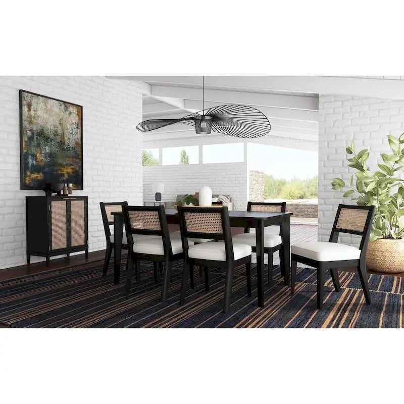 Provide a comforting, nostalgic feel to your dining room that will make mealtime even more inviting. Offering a modern take on mid-century boho style, the Brentwood Rectangular Dining Table features a minimalist design and light scale, making it ideal for compact spaces. Made from sustainably harvested wood in a classic, black-painted finish for added contrast, this table is a beautiful way to comfortably entertain six people when paired with the Brentwood dining chairs.