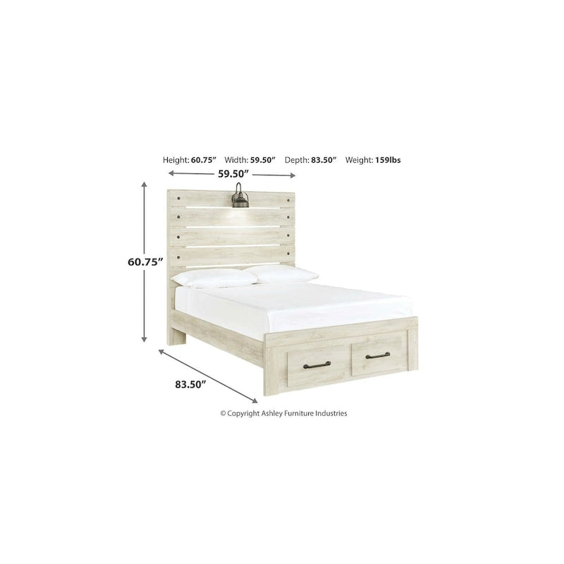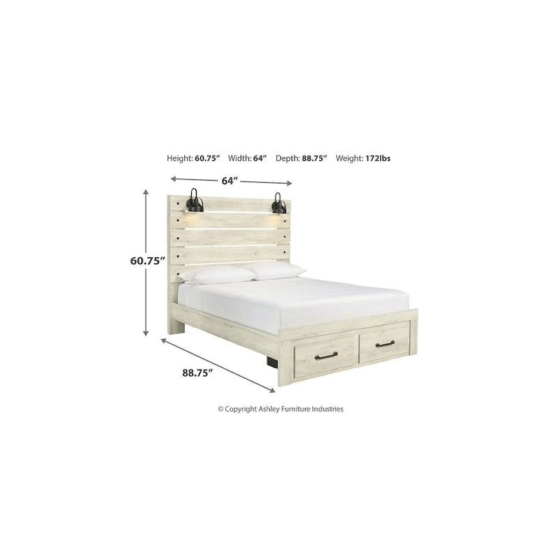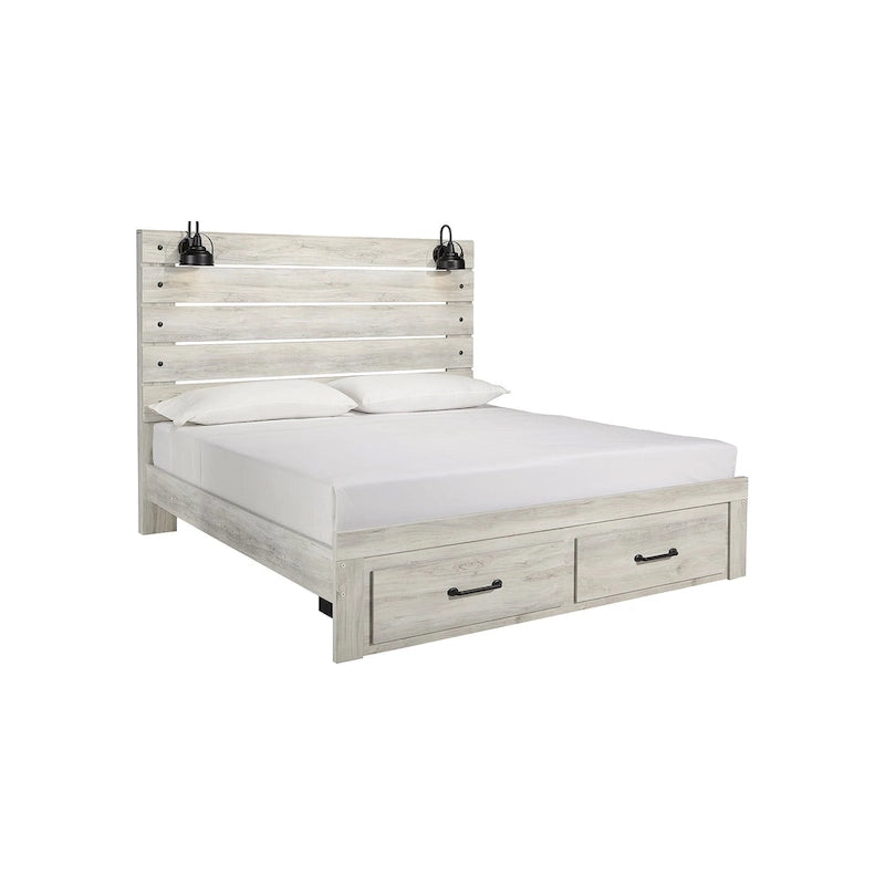 Cambeck Whitewashed Panel Bed w/ 2 Footboard Storage Drawers