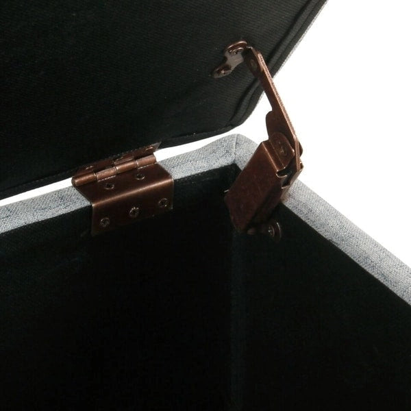 Plush yet practical, the Ainsley tufted storage bench provides a variety of home decor and storage options. Use it as a coffee table ottoman in a living room to serve guests. Put it in a family room to prop feet up after a long day. Or, place it as an end of bed bench to store pillows and blankets when not in use. With solid wood legs in a contrasting finish, soft textured fabric, and a hinged lid for easy access, the Ainsley storage bench is a premium addition for any home. Easy to assemble and maintain.