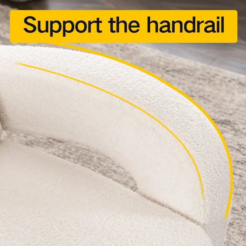Cozy white Teddy Fabric Armchair - Modern Sturdy Lounge Chair with Curved Arms and Thick Cushioning for Plush Comfort