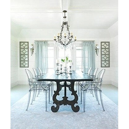Introducing our Crystal Transparent Stackable Plastic Armchair with Back Arms, the perfect addition to any modern space. Crafted from durable and strong smoke-colored poly-carbonate material, this chair is built to last. Its lightweight and ergonomic design make it easy to move and comfortable to sit in. With a UV-protected stackable design, it is easy to store and ideal for both home and office use. The impact-absorbing rubber plates at leg joints provide added stability and comfort, while the protective floor pads make it suitable for indoor or outdoor use. Please note that due to the manufacturing process, there may be some swirls and molding lines on the chair, but they do not affect its quality or durability.