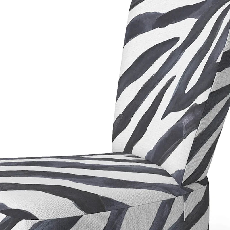 Add a beautiful accent to any room with this Cabin & Lodge accent chair. Our beautiful accent chairs are a great way to add comfort and style all at the same time. All our chairs are printed using the richest colors stemming from high density Italian ink and sewn using the softest fabrics. Enjoy our sturdy hardwood frame chairs in multiple designs and colors. - 1 Accent chair included - Foam Filled Seating - Wood Frame - Arm Style: Armless - Polyester upholstery - Requires Assembly - Color : Black & White - Side Chairs : 32.5in high x 22.5in deep x 27.5in wide - Natural Legs- Slipper Chair : 32in high x 21in deep x 25in wide - Natural Legs- Arm Chair : 32in high x 23in deep x 23in wide - Black Legs