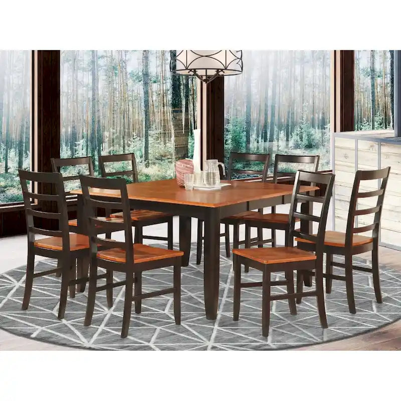 East West Furniture 9 Piece Dining Room Table Set Includes a Square Kitchen Table with Butterfly Leaf and 8 Dining Chairs, 54x54 Inch, Black & Cherry