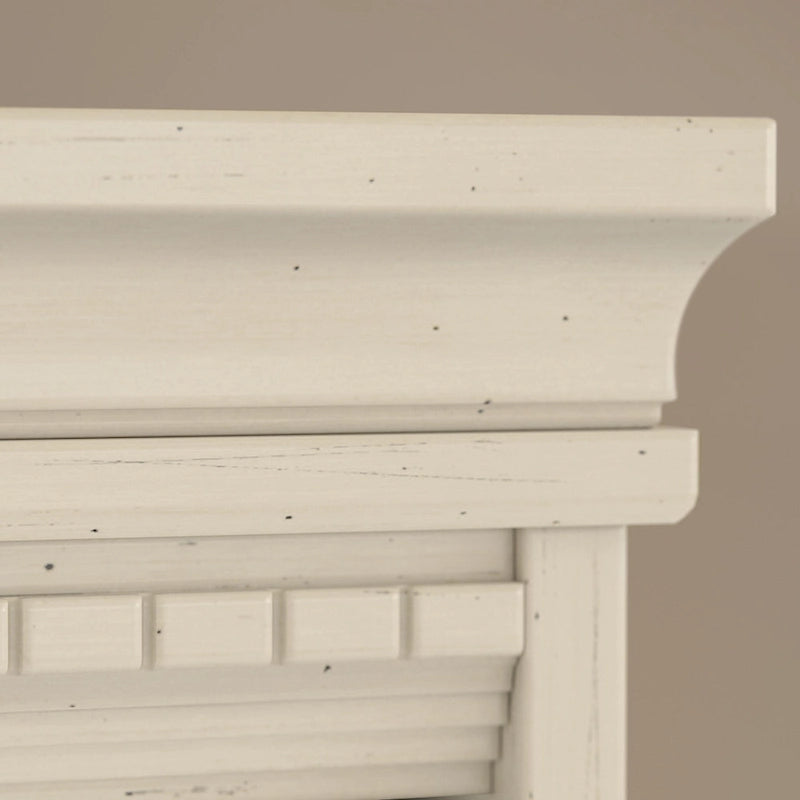 The Bush Furniture Fairview 60W L Shaped Desk with Hutch, File Cabinet, Bookcase and Storage offers a practical home office solution with modern farmhouse style. Enjoy your morning coffee, surf the net and pay bills with room to spare on the L Desk's durable work surface. Stash pens and paper in the box drawer and cubby while organizing mail inside the letter-size file drawer. A vertical cabinet with one adjustable shelf holds materials of various sizes, and a drawer with a drop-down front makes an ideal keyboard tray or laptop storage shelf. Along with two closed storage areas, the Hutch features a large compartment with plenty of space for books and decorations. Three smaller shelves keep work-in-progress organized so you can access projects without breaking focus. The 2 Drawer Lateral File Cabinet opens on smooth full-extension ball bearing slides for an effortless reach to letter, legal and A4-size paperwork. Conceal office supplies and household items behind the Storage Cabinet's stylish louvered doors while taking advantage of the tall Bookcase's open shelving to showcase your personal library. Available in a variety of distressed finish options, all complemented by Antique Pewter hardware. This farmhouse desk with storage set is tested to meet ANSI/SOHO standards for safety and performance and is backed by the Bush Furniture 6 Year Manufacturer's Warranty.