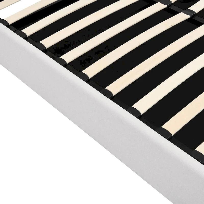 [No Box Spring required] With 24 reinforced slats, the mattress (not included) will be well supported and your body weight will be evenly distributed for a great sleeping experience. Enjoy the convenience and unparalleled ease of use that this queen size wood platform bed provides. Headboard is included as a comfy linen fabric backrest that brings you and your partner a cozy feeling.