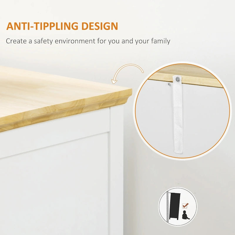 HOMCOM Modern Sideboard with Drawers, Buffet Cabinet with Storage Cabinets, Rubberwood Top and Adjustable Shelves, White