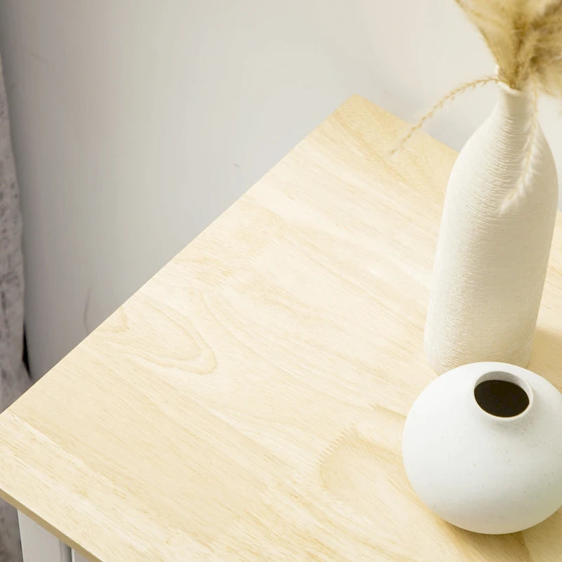 - Made of MDF, particle board, and rubberwood for sturdiness