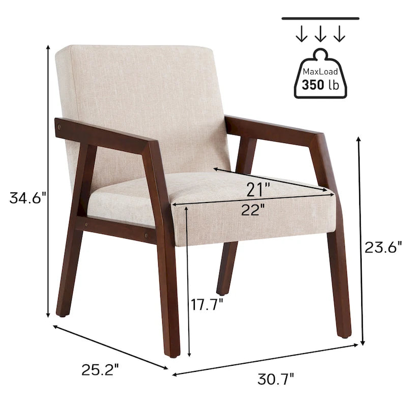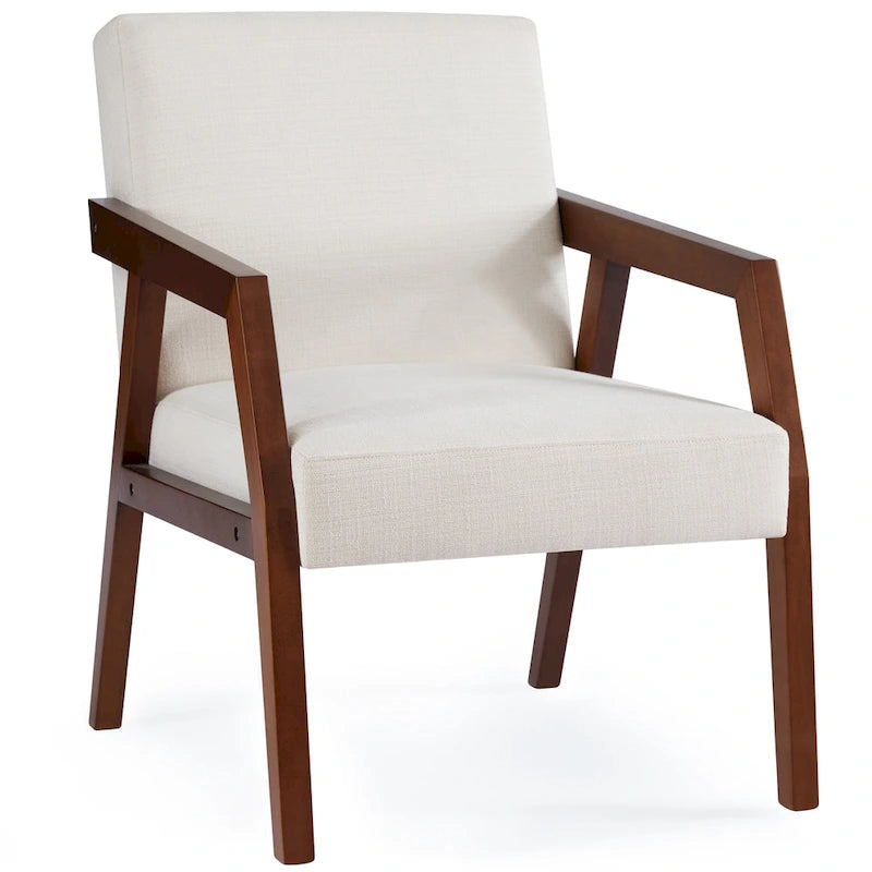 HUIMO Accent Armchair Solid Wooden Brownness/ White/ Blue Upholstered Mid-Century Modern Accent Chair for Living Room, Bedroom