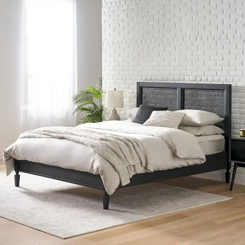 Set the foundation of your bedroom decor upon a timeless look that brings any space an unparalleled aesthetic. This stylish headboard and platform bed set offers a cozy elegance for your home while providing a low-profile and sturdy slat design that eliminates the use of a box spring. Featuring a classic panel design, beautiful cane webbing accents, and elegant tapered legs, this sophisticated bed frame is built with rich acacia wood that imbues the room with an earthy rustic charm.