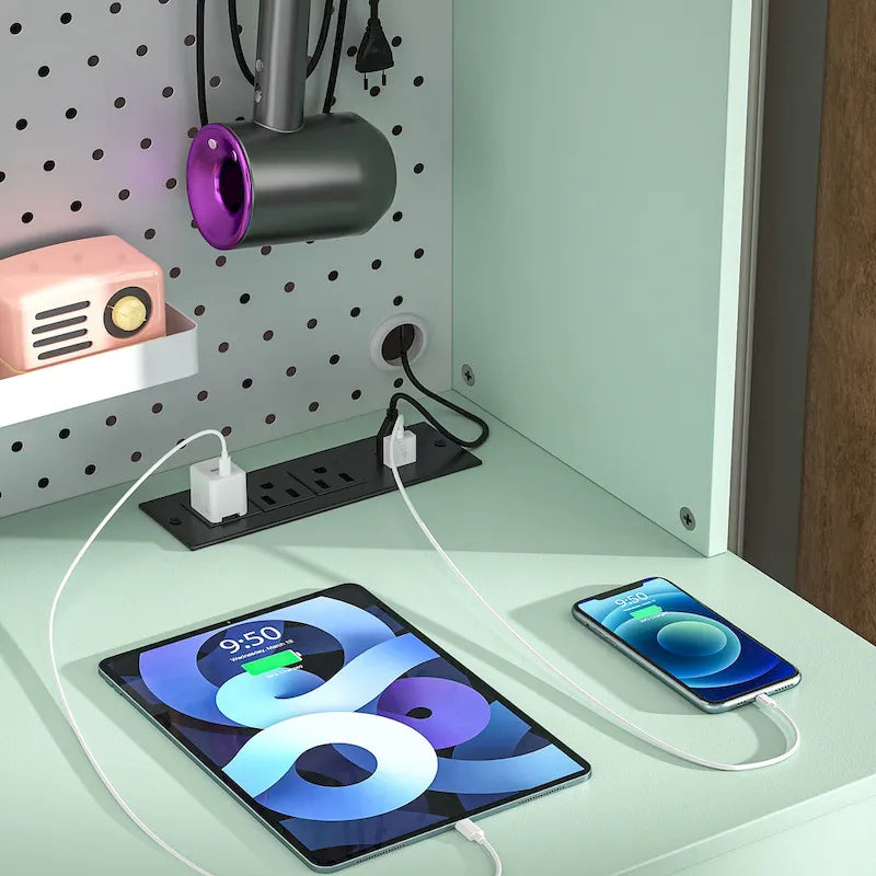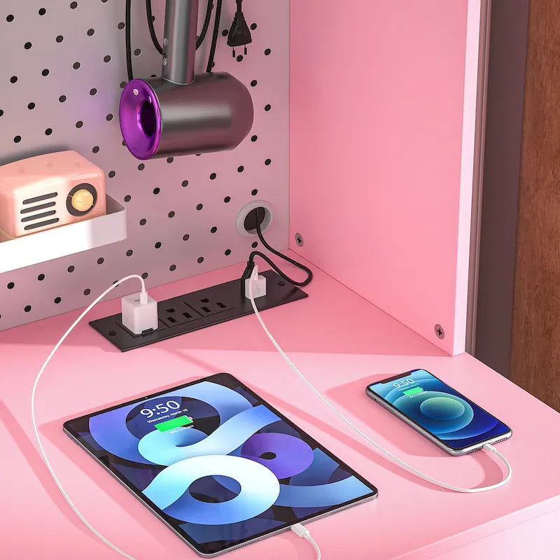 - Built-in Charging Hub: This modern vanity features an in-built charging station, allowing you to effortlessly power up your smartphones, tablets, and other devices. The convenient placement ensures your gadgets are always within reach and charged, enhancing your overall experience.