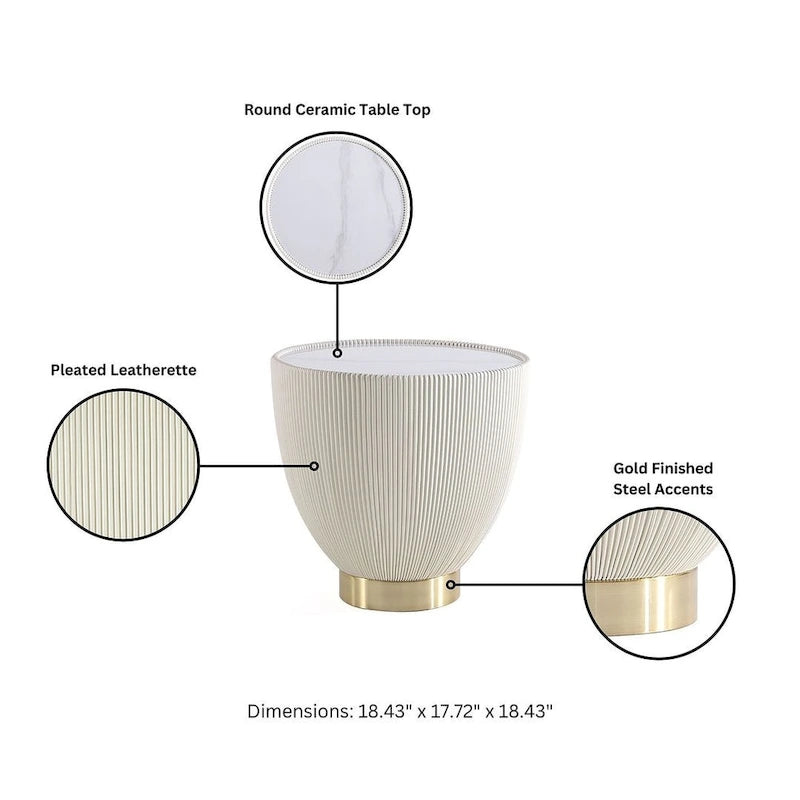 Introducing our striking Modern Anderson End Table, a versatile addition to your living and dining spaces. Crafted with artistic flair, it features unique leatherette pleating and beautiful gold metal finishes that adds a touch of stunning design to your home decor. Built with a high-quality steel frame and feet, this table effortlessly combines style and durability. Pair it with our Manhattan Comfort Coffee Tables to create a cohesive and stylish look, making your living and dining areas stand out.