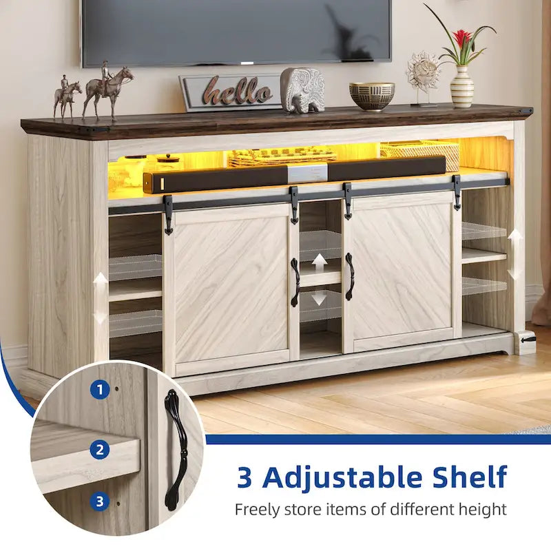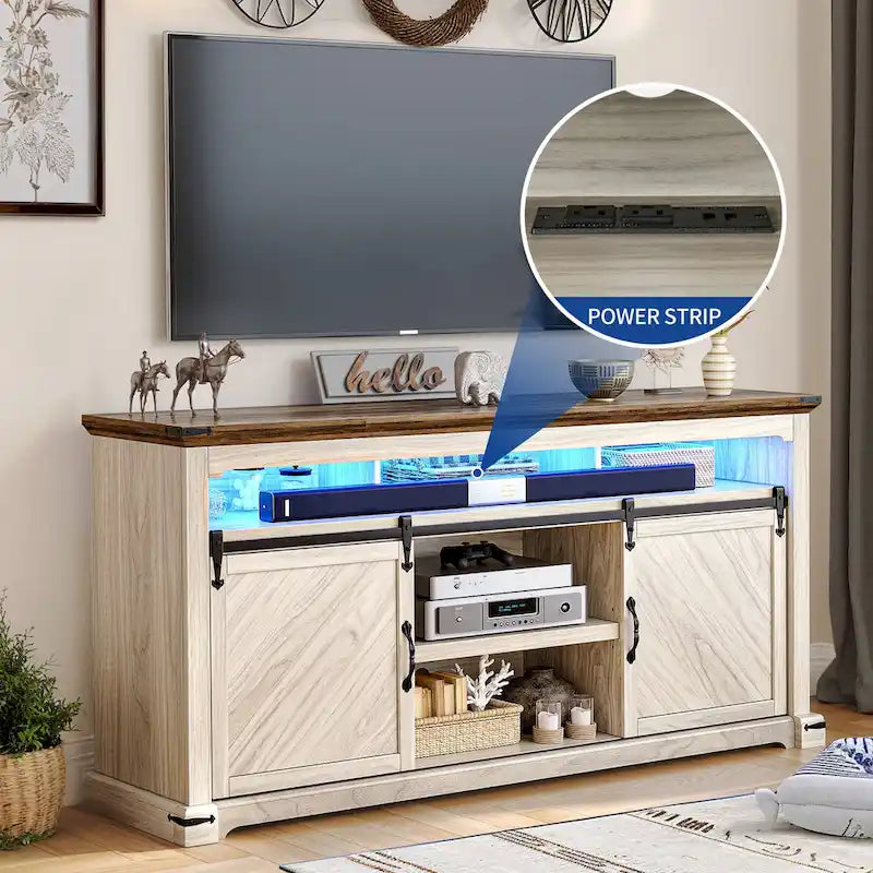 Moasis Farmhouse TV Stand for TV up to 75 Sliding Barn Door Media Console with LED Lights