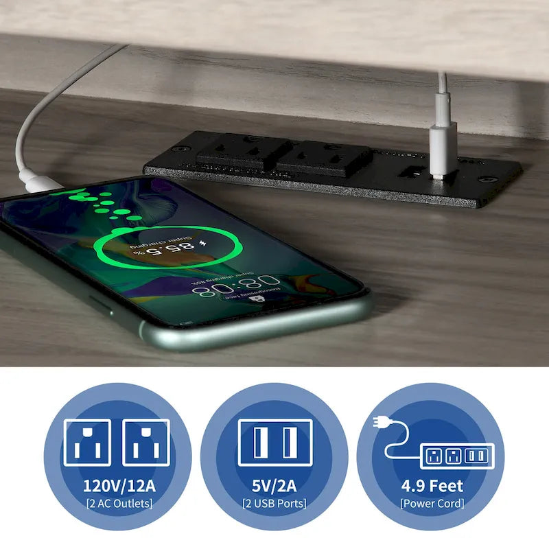 - Multi-functional convenience with 2 power outlets, 2 USB ports, and efficient cable management.