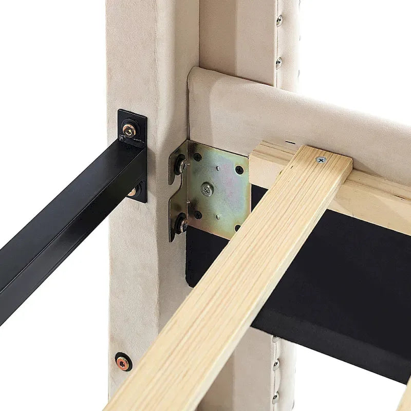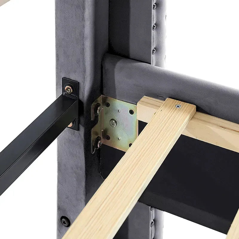 - Sumptuous Velvet & Intricate Button Tufted Headboard: The Bed Frame showcases an upholstered headboard in plush velvet fabric, adorned with meticulous button tufting. This exquisite combination adds a touch of lavishness and refinement to your bedroom decor.