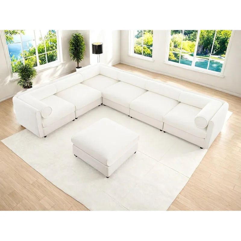 Oversized 7-Piece Chenille Upholstered L-Shaped Modular Sectional Sofa with Storage Seat, DIY Combination
