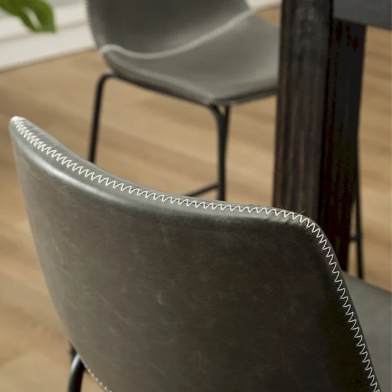 - Stools feature vintage PU Leather in your choice of color and durable metal frame in a black finish, matching with the detailed zig-zag stitches.