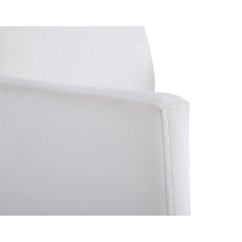 This comfortable arm chair features beautiful cream Polyester Fabric upholstery on a polished stainless steel frame with cross-bar base, a great stylish choice for your dining room setting. It also comes fully assembled and ready for use right out of the
