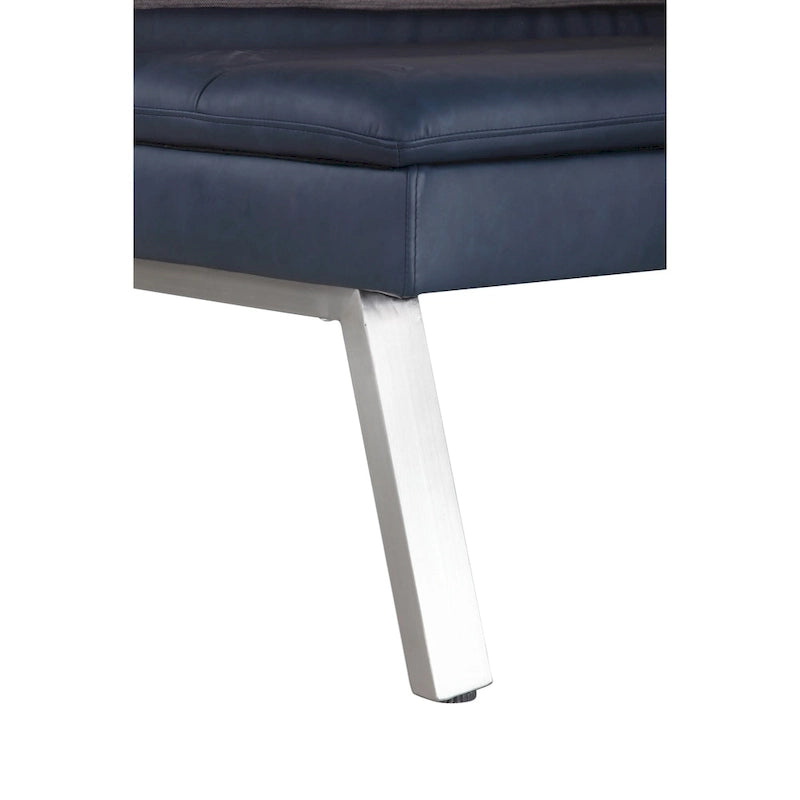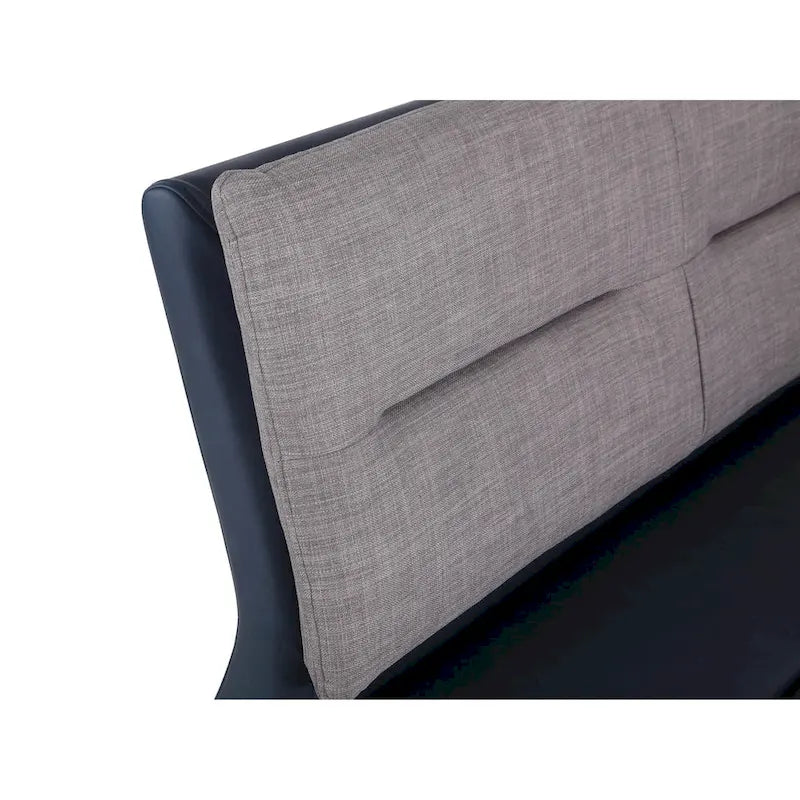 - Two-tone blue PU and grey fabric seating