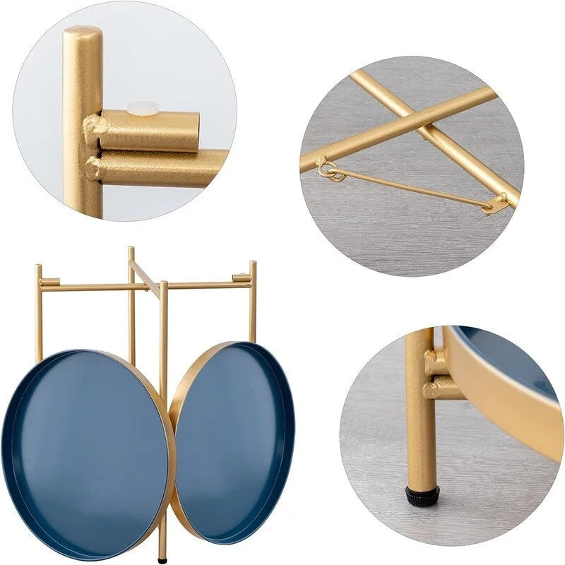 - The 2-tier end table is made of metal, and the surface of the metal is gold and blue coating, smooth touch, the color is fashion and modern, add a touch of luxury to your home