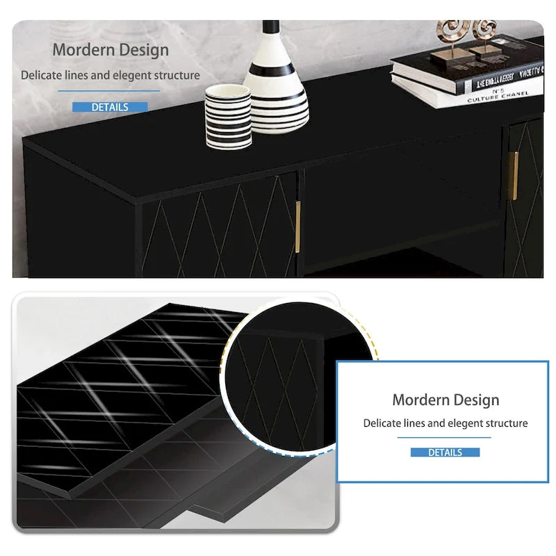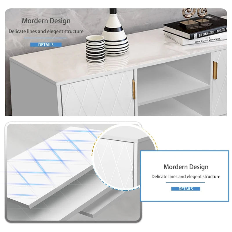MODERN TV STANDReinvent your home with a charming, light luxury modern TV stand; This minimalism-inspired TV console will look great in rooms featuring an eclectic modern tone; concise lines and modern tone will complement your living room. Its perfect size and practical design are ideal for living room, bedroom, office and other places.