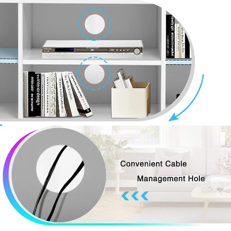 LARGE STORAGE SPACE1 fixed compartments provide sufficient storage and display space for books, DVD players, game consoles and other items. The cabinets with open shelf on both sides are ideal for hidden storage, which will maximize space utilization. two cable management allow the disorganized wires to be placed in order.