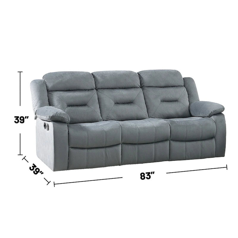 Velvet Upholstered Manual Motion Recliner Sofa with USB Port