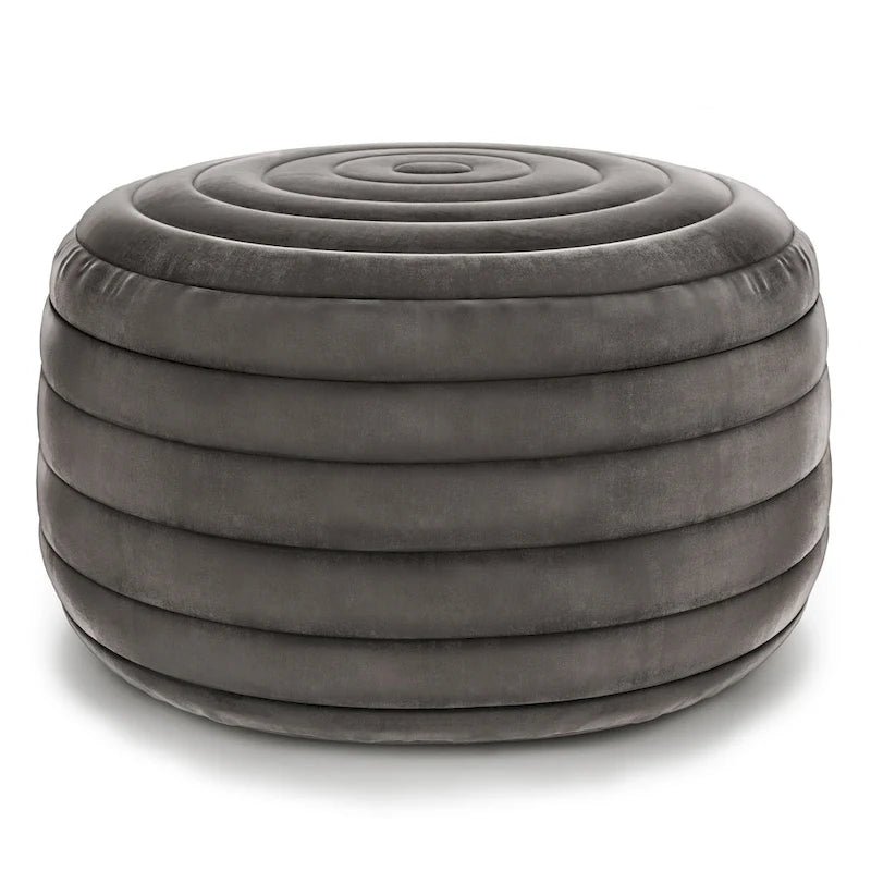 Upholstered in velvet, Anna Round Pouf is soft to the touch and comfortable to sit on. Its detailed design and beautiful color adds elegant style to any dcor. Beautiful and functional this pouf can be used as an ottoman, an accent piece or casual seating.