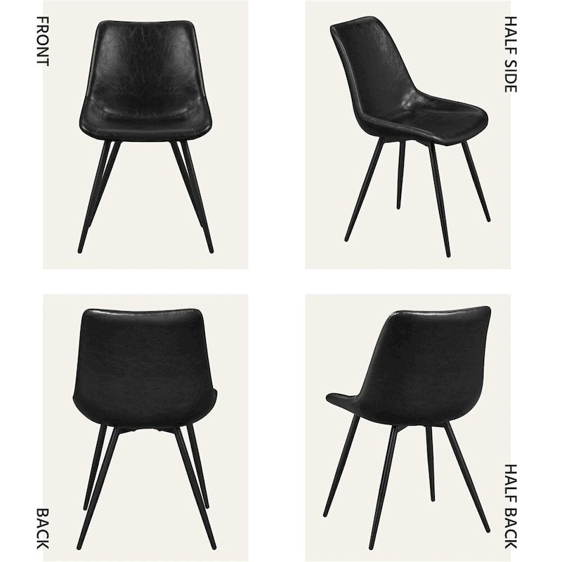 Our set of 2 accent chairs is crafted from a blend of long-lasting materials, including durable faux leather, foam, powder-coated metal, and firm plywood. Each chair is supported by a sturdy metal frame for added support, holding up to 300lb. These stylish dining chairs are an ideal pick thanks to their neutral color and modern black metal legs, which perfectly match various home decor styles. Their fashionable design and well-crafted stitching make them a great addition to any room. The assembly is very easy and quick.